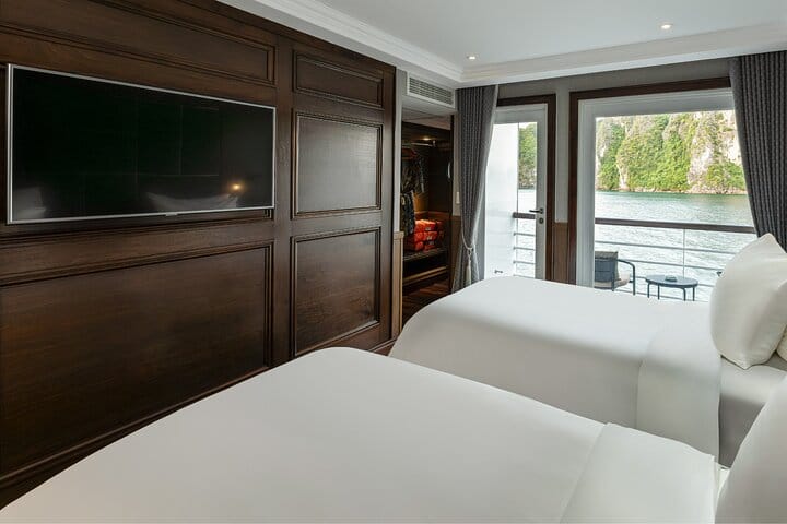 A calm itinerary around Lan Ha Bay, located 25 kilometers from Halong Bay, distinguishes Ambassador Signature from its sister ships. It visits beautiful places like Dark-Light Cave and Viet Hai Fishing Village and offers things to do including kayaking, local rowing boat rides, bee houses, fish foot treatments, and excursions to fish lakes. If these outings aren't your thing, you can always get a massage and take in the splendor of the bay from your own balcony or the sundeck.
