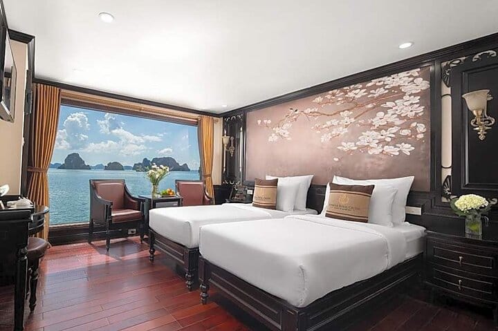 You may participate in a range of activities and explore both Halong Bay and Bai Tu Long Bay on this two-day group excursion that departs from Hanoi. You don't have to worry about making many plans for food, housing, transportation, or other things; instead, you may spend more time exploring the bay. Take a cooking class, go kayaking, take a bamboo boat trip, or participate in any other activity that your guide and crew have planned. Known for its stunning limestone karsts that rise dramatically out of the emerald seas, Halong Bay is a UNESCO World Heritage Site. As you journey along this natural wonder, your senses will be overcome with sheer awe at the panorama.