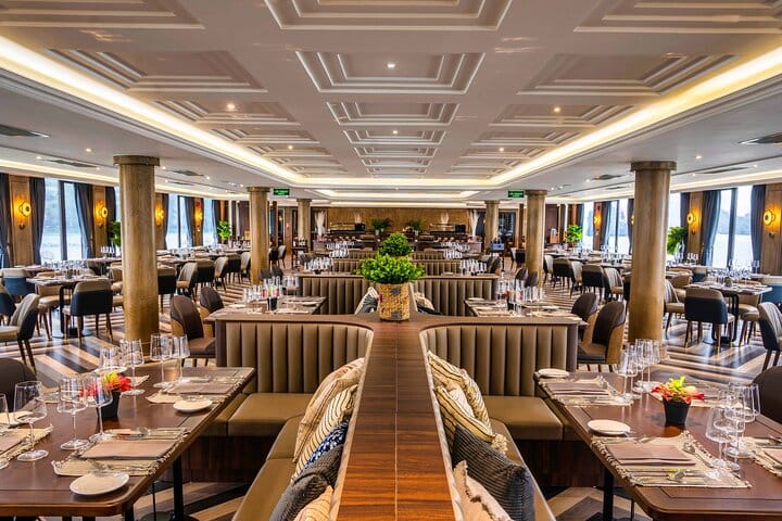 Experience an unparalleled adventure on the grandest cruise in Halong Bay with this captivating tour. Immerse yourself in the wonders of Surprise Cave, the charm of Cua Van fishing village, and the magic of Luon Cave. Engage in exhilarating activities such as kayaking, squid fishing, and witnessing breathtaking sunsets. Find serenity in the spacious cabins as you embark on the ultimate journey of a lifetime.